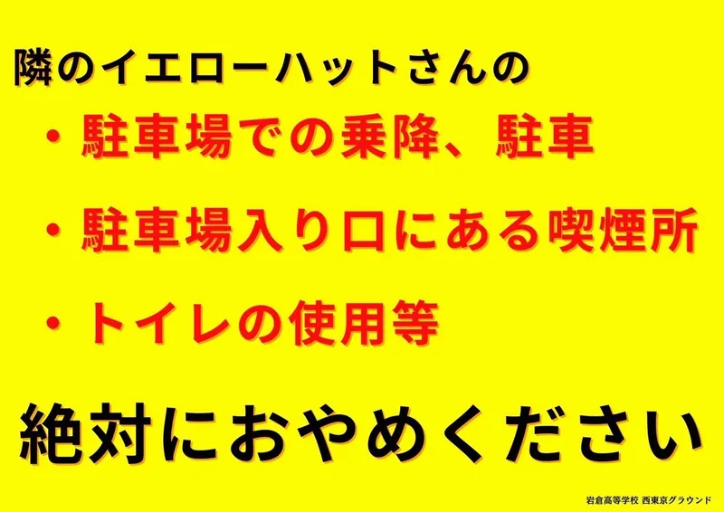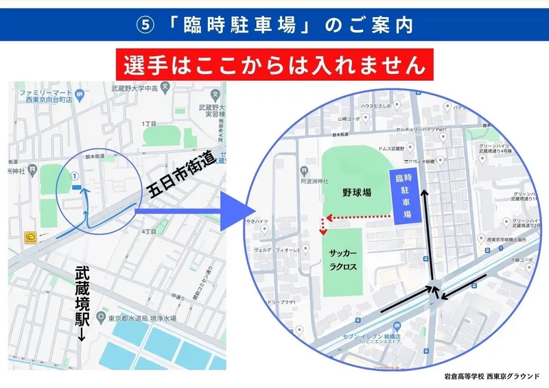 ・グラウンドに男子トイレはありますが、女子トイレはありませんので予めご承知おきください。(正門横に女子トイレあり)