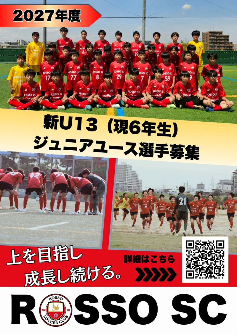 ロッソSCでは2027年度ジュニアユース(中学生)の選手募集について